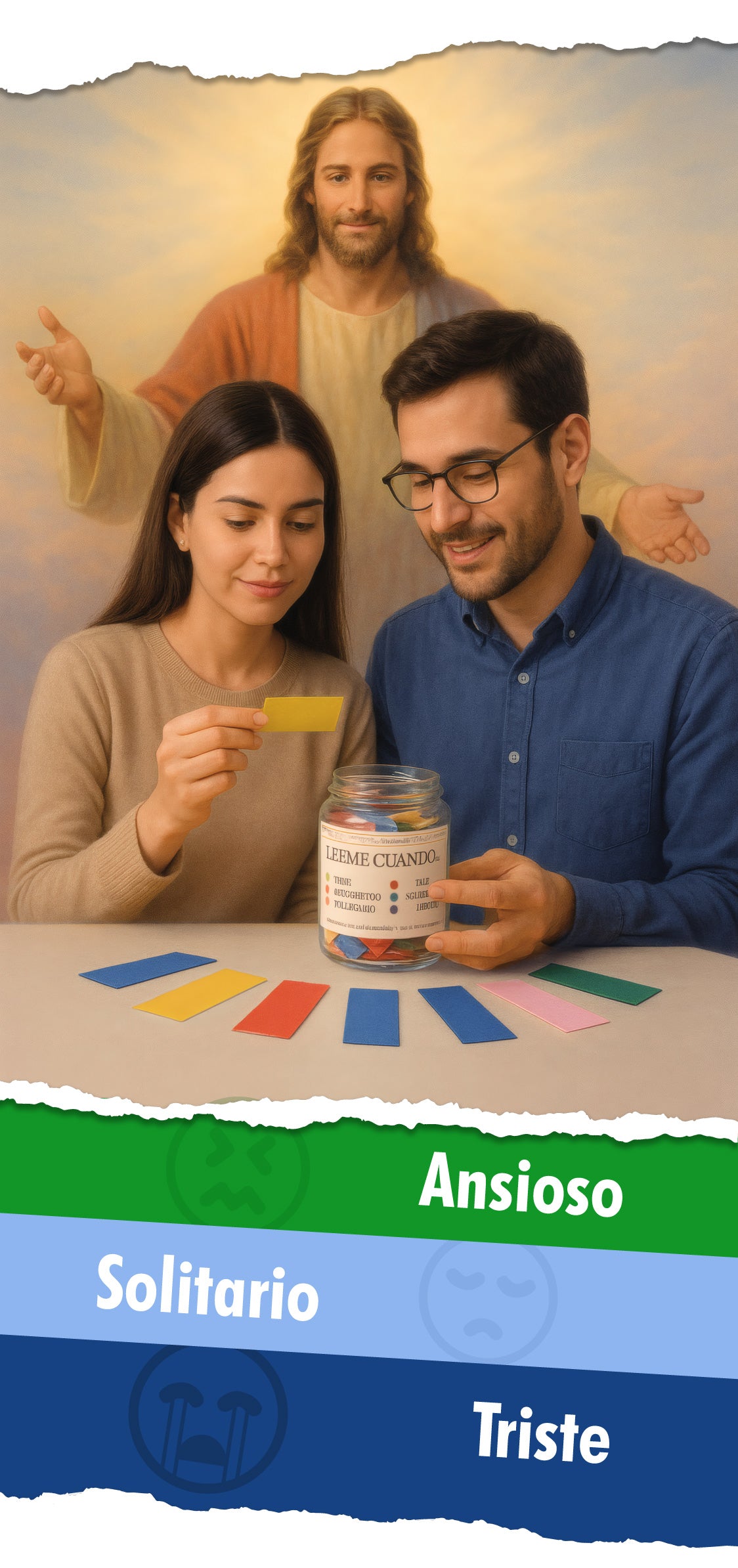 Elige una tarjeta del color que refleje tu estado de ánimo. Lee el versículo y tómate un momento para reflexionar o orar. Úsalo a diario o cuando necesites apoyo espiritual.