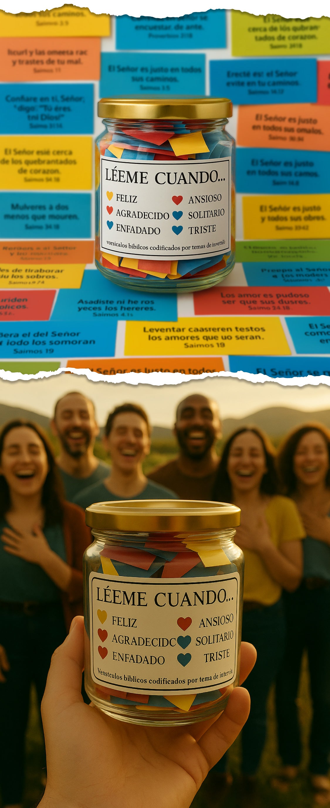 Esta fue una de las mejores compras que hice para una amiga. Si no puedes sentarte a leer la Palabra, el frasco te la trae en pequeños mensajes listos para animarte. Se los regalare si o si a mis demas amigos y a mi familia.Marlene