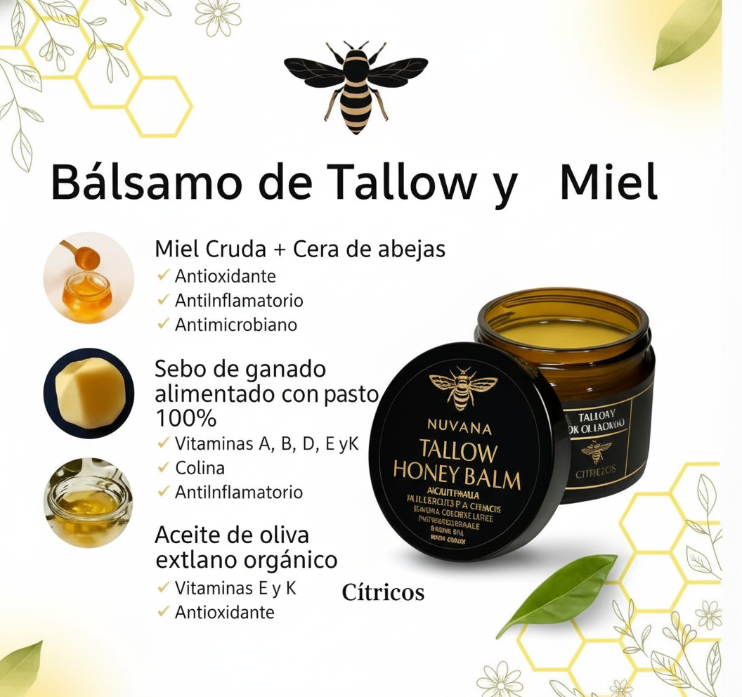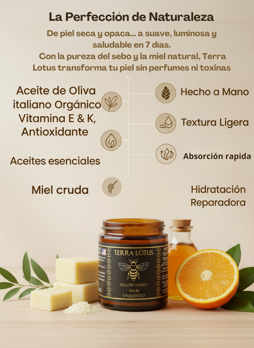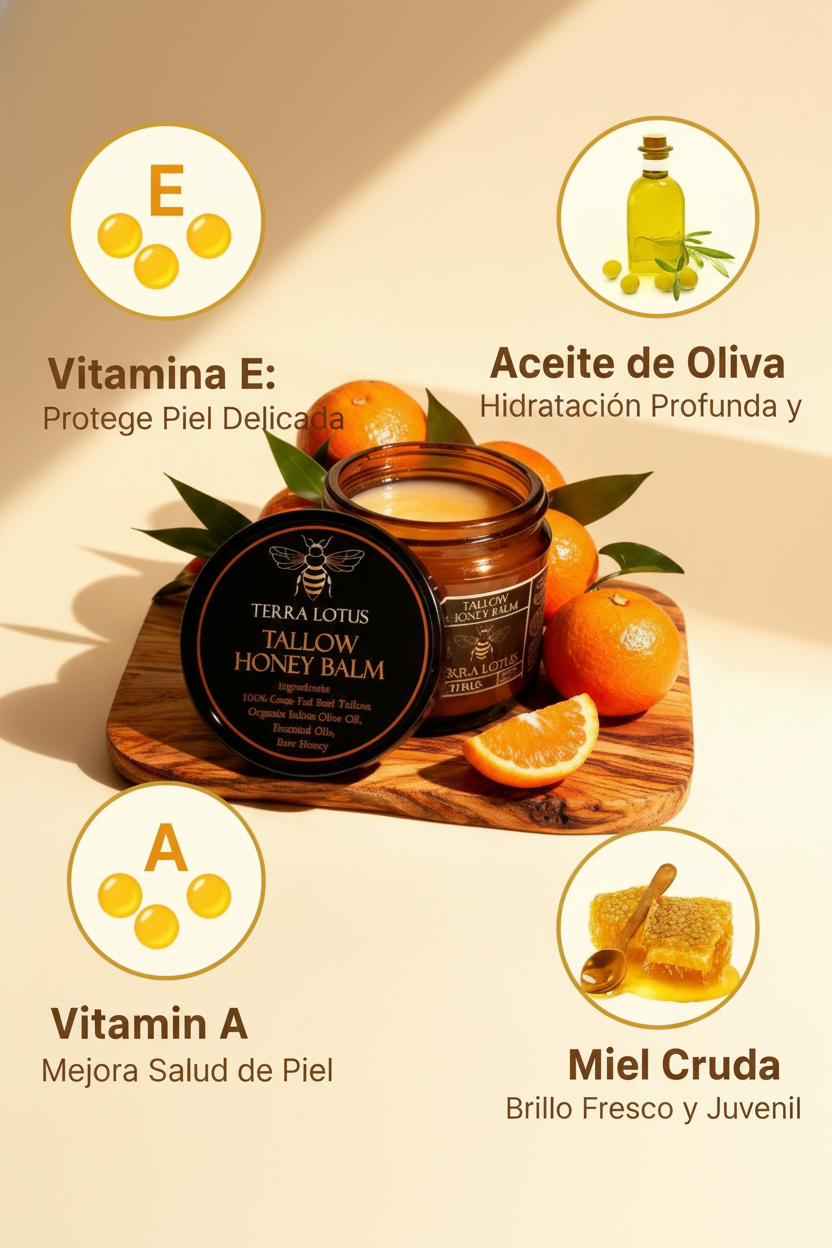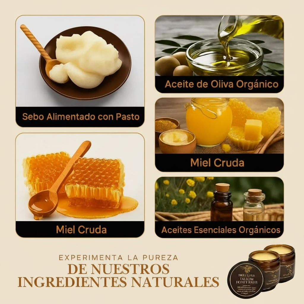 El Tallow Honey Balm devuelve firmeza, brillo y suavidad, reduciendo arrugas y mejorando visiblemente la textura de la piel.