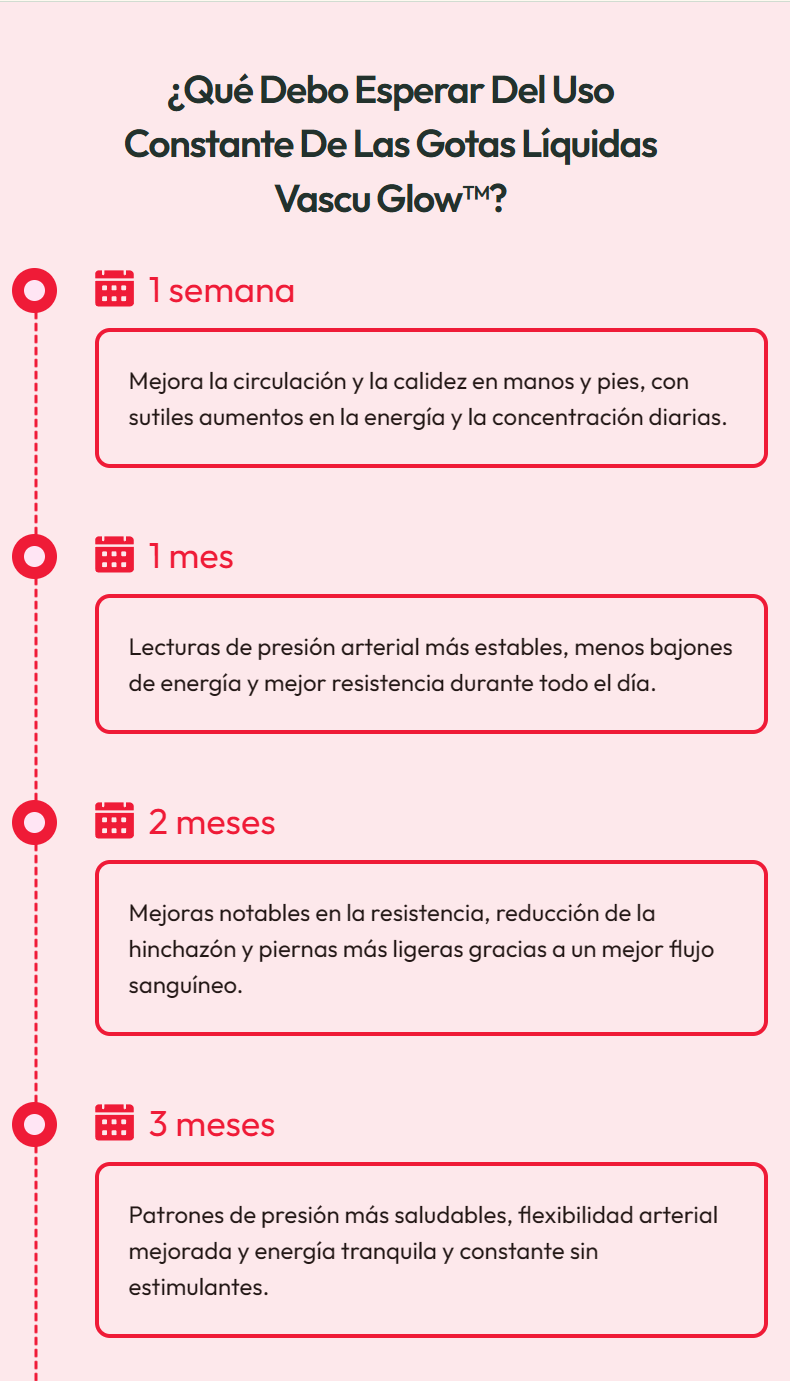 Vascu Glow es seguro para adultos sanos. Sin embargo, si tienes condiciones cardiovasculares preexistentes, tomas medicamentos anticoagulantes o tienes alguna condición médica, consulta con tu médico antes de usar.