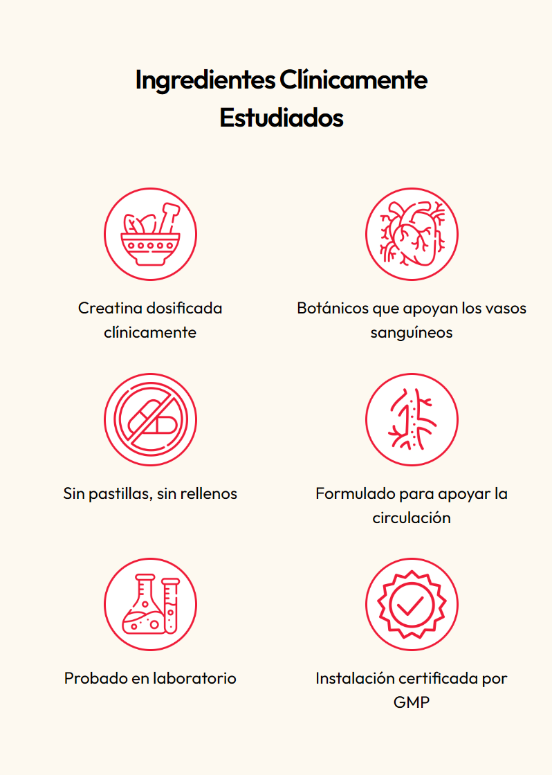 Los suplementos convencionales para circulación están llenos de ingredientes obsoletos y rellenos sintéticos. Ignoran las causas reales: rigidez arterial, mala absorción e inflamación. Por eso no funcionan.